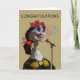 Congratulations on Your Performance, funny skeleton pun filled paper greeting card with a paper mache female skeleton figure at a microphone singing. She is adorned with red roses, a marigold ribbon and bow, and gold accented dress. Art, image, and verse copyright © Shoaff Ballanger Studios, 2022.