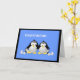 Cute little penguins with twins hiding behind them. Congratulations, you've hatched. Wish the happy family well with this lighthearted greeting card from Scott Ink.