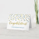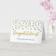 Wedding congratulations card for the parents of the groom with blue and gold confetti pattern.