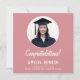 Congratulations Simple Pink Graduate 2 Photo Graduation Card. Elegant and simple design with trendy script and custom photo on a pink background. Add your photos and message for the graduate on the backside of the card.