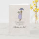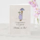Congratulations to the Mom to Be on her pregnancy. This cute card shows a Mom caring for her baby bump with a mini umbrella. Perfect for a baby shower!