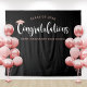 Celebrate your grad in chic style with this rose gold and black graduation party backdrop! The design features "Class of" in rose gold lettering, "Congratulations" in flowing white script, a rose gold grad cap, and a personalized school field on a rich black background. Customize all text for a glamorous celebration centerpiece. Perfect as a photo wall, dessert table, or party focal point.