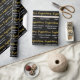 This graduation wrapping paper is black. Congratulations is in an elegant gold script. Two lines of white display text are below the script. You can edit the text to show the graduate's name and the year the student is graduating. The text forms a pattern on the wrapping paper. All text can be edited or deleted as desired.