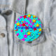Round pin has colourful star design with "congratulations" on the front. You can personalise this design with a name or message. Perfect reward item for teaches, graduation, good grades, new job, and more.