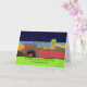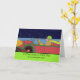 Congratulations to a wonderful mum on her new car. Greeting card with vintage look of a classic red car with green trim. Lady dressed in camel hair's coat, yellow green hat, glove, and long yellow scarf. Night driving scene with star filled sky. Retro auto card. Art, image, and verse copyright © Shoaff Ballanger Studios.