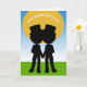 Two male silhouettes - Congratulations Two Grooms In Top Hats Gay Wedding greetings card .. gay pride anniversary / engagement / wedding day cards .. designer gay wedding themed card from Ricaso - featuring two cute cartoon styled men wearing top hats - featured in front of a sun and blue sky