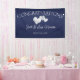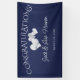 Congratulations White Hearts on Navy Elegant Wedding Banner designed for your Wedding Reception. The text includes: CONGRATULATIONS!, The Bride and Groom's Names and Wedding Date. To personalise, simply insert your text into our easy template, replacing the sample.