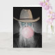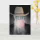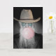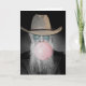 Congratulations paper greeting card. Congratulations! You’re unbelie-bubble! Funny photograph of an old guy wearing a cowboy hat, wire rimmed tinted shades, and blowing a big pink bubble. Art, image, and verse copyright © Shoaff Ballanger Studios, 2022.