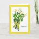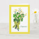 Congratulations card features a spring bouquet of lucky shamrocks and yellow blooming branches along with pussy willows. The bouquet is bound together with a faux (not real) ribbon-bow. Can customise and use for an engagement, wedding, wedding vows, or other spring event. Art, image, and verse copyright © Shoaff Ballanger Studios, 2021.