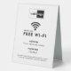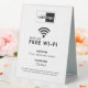 Make it easy for customers to connect with this customizable free Wi-Fi table tent sign, ideal for coffee shops, salons, waiting areas, restaurants, boutiques, Airbnb accommodation rentals, and hospitality businesses that offer complimentary internet access. Featuring a clean, minimalist black and white design, this double-sided display includes a clear Wi-Fi icon, bold “Free Wi-Fi” headline, and editable fields for your network name, password, and any additional usage instructions or terms. The top of the sign offers space to upload your own logo, allowing for seamless branding that matches your business identity. Its professional layout ensures guests can quickly find the login information they need, enhancing their overall experience while encouraging longer visits and more engagement. Printed on your choice of durable plastic or economical paper, this versatile sign is easy to place on tables, counters, or reception desks. It's a functional yet stylish solution that helps improve customer satisfaction, increases convenience, and supports brand consistency in any modern service environment.