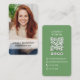 A simple design features a QR code social media photo, a modern simple minimalist contemporary, with an add your own photo logo, a contact info phone email website, with Facebook Instagram Pinterest twitter, a trendy stylish photograph picture pro, a basic clean digital scannable scan, an elegant minimalist design style, with a photo or graphic template, a simple green and white style.