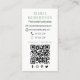 This design features a simple business card template with a modern professional simple minimalist look, minimal elegant social media icons, a trendy plain scannable QR code, a chic digital contact, a phone email cell website icon, a simple black and white, elegantly minimalist design stylish, photo or graphic template, contemporary clean modern style, with tropical botanical green palm leaves foliage