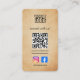 This is a uncluttered brown parchment coloured connect with us business card template that has the Instagram and Facebook Icons on the front side bottom and the username for your accounts below the icons. Your website is shown below the QR code. You can link any URL to the QR code, it's up to you. The template shows a website but you can change it you a social media page, a booking page, a portfolio link. For the logo section you can have a logo image, a headshot or another image. The possibilities are endless. On the backside you have your logo and business information. If you need help with your design or need help adding different social icons just click on the message button and I will quickly get back to you to assist you. Thanks, Sandy