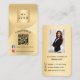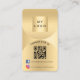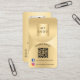 A faux gold looking background. Personalise and add your business logo, photo, name, title and contact information. Add your website url/link to the Qr code. With Facebook and Instagram icons. Black text. Text: Connect with us.
