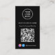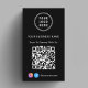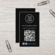 Modern and professional black business card for your company with your QR code for customers to scan for a list of your products, services, prices or other information. Upload your logo and QR code and add your business name, website, slogan, phone number, street address, etc. in simple white typography. Add your instagram and facebook user id for customers to follow you on social media.