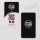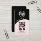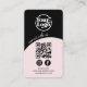"Connect With Us QR Code Social Media Black Pink Business Card" features a clean black, white, and blush pink, design layout, providing ample space for your logo, QR code, and black and white social media icons (Instagram, Facebook) prominently displayed on a blush pink circle shape, ensuring that clients and contacts can easily connect with you digitally: access your website, portfolio, social media account, or contact details with a quick scan. Customisable by adding your logo, QR code link, social media icons, and contact details. Ideal for networking events, meetings, or daily business interactions, this card combines professionalism and convenience in a simple, stylish package.