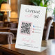 Designed with a modern, minimalist aesthetic, this pedestal sign displays a scannable QR code that links directly to your social media profiles, website, or contact page.