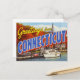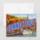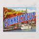 This beautiful retro-style design captures the charm of the Constitution State in the autumn. It features the classic "Greetings from CONNECTICUT" typography set against a scenic New England harbor. The scene includes elegant sailboats and yachts docked at a marina, vibrant fall foliage in shades of orange and red, and a traditional white steeple, symbolizing the state's coastal beauty and rich colonial history. Perfect for fans of vintage travel posters, retro artwork, sailing, and classic New England autumn views.