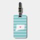 Rep your home state of Connecticut with this cute turquoise and pink luggage tag featuring a silhouette map of the state of Connecticut with a pink heart inside, overlaid on a trendy preppy aqua stripe background. This cute design in trendy colours makes a great Christmas stocking stuffer or gift for women, teens and girls whether living in Connecticut, out of state for college or feeling homesick or nostalgic for their home state. Personalise the reverse side with your contact details in white on matching turquoise.
