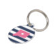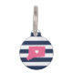 Let your furry friend show some home state pride with this cute Connecticut ID tag. Design features a white silhouette map of the state of Connecticut in pink with a white heart inside, on a preppy navy blue and white stripe background. Add your pet's name and contact information to the back in white lettering on a pink background.