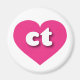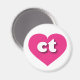 This magnet features a vibrant and shapely hot pink heart containing the bold, rounded, white lower case letters ct, a playful version of the abbreviation for Connecticut, the constitution state.