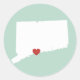 This modern, location-specific sticker can be customised to your heart's content. Just click on the "customise it" button to move the heart to your location in Connecticut, change the background colour, and add any text you wish. Don't forget the matching invitation, RSVP card & stamps:
