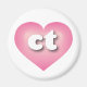 This magnet features a pink heart with a white-washed centre containing bold, rounded, white lower case letters ct, a playful version of the abbreviation for Connecticut, the constitution state.