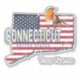 Connecticut, state in United States with map and bird design, vintage US flag, souvenir for holiday. Connecticut with retro design and map as USA souvenir for city and America! Lifestyle for Connecticut backpackers and American city trips.