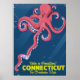 Connecticut USA Octopus vintage travel poster. "The Constitution State" American cartoon poster.