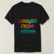 The "Conquer From Within" t-shirt design features a striking, minimalist illustration of a person breaking free from chains, symbolising empowerment and personal transformation. The graphic is complemented by bold, modern typography that reinforces the message of inner strength and resilience. With clean lines and a powerful visual message, this design serves as a reminder to overcome obstacles and harness the power that lies within. Perfect for anyone motivated to rise above challenges and take control of their own destiny.