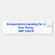 Conservative Looking for a New Party.Will Vote!!! Bumper Sticker