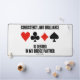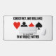 Showcase exactly what you look for in a bridge partner with this bridge saying desk mat featuring the four card suits along with the following description: "Consistency, Not Brilliance Is Desired In My Bridge Partner". Do a double-take with a dose of bridge humour the next time you play bridge with your bridge partner with this desk mat. Memorable reminder of what is needed in a bridge partnership!