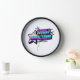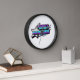 The size of the clock is dramatic and the abstract alcohol ink design is soothing and intricate at the same time. I chose the black frame that adds pop to the blue and gold design. The gold printing would be better in a slightly darker or larger font. I love it and I’m looking for just the right place in ny new apartment. I would recommend this clock for a personal gift or a present. I feel that the quality is excellent for the money! I’m a bit of a clock nut so I’m pretty particular about my purchases. The clock is larger in diameter than many if the clocks I have, so it stands out very well. I think a slightly darker printing color and a moderately larger size would best suit a professional decor or add more impact in a work place item.