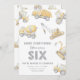 Six & Strong! Watercolor Construction Vehicle 6th Birthday Invitation