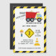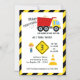 Cool construction birthday party invitation with a simplistic black and white layout customisable to your event specifics. Graphics by PremiumClipart.