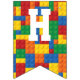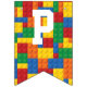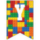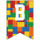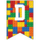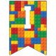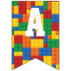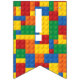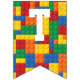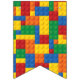 Colourful construction building block toys happy birthday bunting banner. A great bunting banner for a boy's birthday party where interlocking construction toy building blocks are the theme. You can change the happy birthday message is you want.