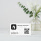 Font: House icon, text and QR code on white plain background. Back social media icons, (choose the one you like, delete the rest), and pictures x3. You can edit photo and icons filters. Home symbol: leave it or change image: your logo, picture ...