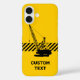 Silhouette of construction crane. Vector icon with customisable colour. Custom text.