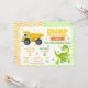 Ideal for construction and dinosaur themed birthday parties, joint birthdays, twin celebrations, sibling parties, and truck-loving dino fans, this editable invitation is a fun and unique way to invite guests to your special day.