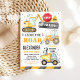 Dig into the fun with this vibrant construction dump truck birthday invitation, perfect for your little builders big day! Featuring a bold yellow truck and classic caution stripes, this design sets the tone for a high-energy "Under Construction" themed party. Easily customise the text with your event details to create a professional, high-quality invite that guests will love. It is the ideal choice for toddler or preschool birthdays where big machines and dirt are the main attraction.