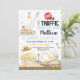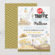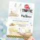 This cute birthday invitation features watercolor construction trucks and colourful balloons.