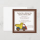 Blue and yellow and red dumptruck birthday party invitation. Customise for any child's birthday or other special occasion. Change text to suit your needs.