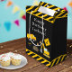Celebrate your little one's special day with this custom boy gift bag with an adorable construction theme. The gift bag has a dump truck and excavator working together at a road construction site. There are also orange traffic cones, a dirt pile, and yellow and black stripes. Add your Happy Birthday greeting and your child's name and age for a special touch!
