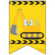 Cool custom construction excavator Happy Birthday bunting banner for a child who loves yellow construction vehicles in black and yellow. Fun vehicle design for a little boy who loves cars and trucks. Customise with your kid's name under the black and yellow caution tape.