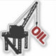 Silhouette of construction platform with crane. Custom text hanging from hook. Vector icon with customisable colour.