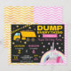 The playful headline “Dump Everything for a Royal Birthday Party” brings both themes together in one sweet and memorable invitation. Soft pink accents, cheerful yellow details, and cute illustrations create a balanced design that feels both fun and magical.