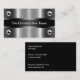 Coolest construction business card design with simulated silver metallic background art printed to mimic the look like a metal graphic and printed on both sides with your business name featured on the front and details printed on he flip side. Two side printing included on high quality business card paper stock.