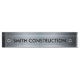 Construction theme industrial looking desk plaque with name template you can replace with your own. A silver metallic looking background with metal screws graphic digitally printed as a backdrop. Designed for an construction or building company or industry executive.