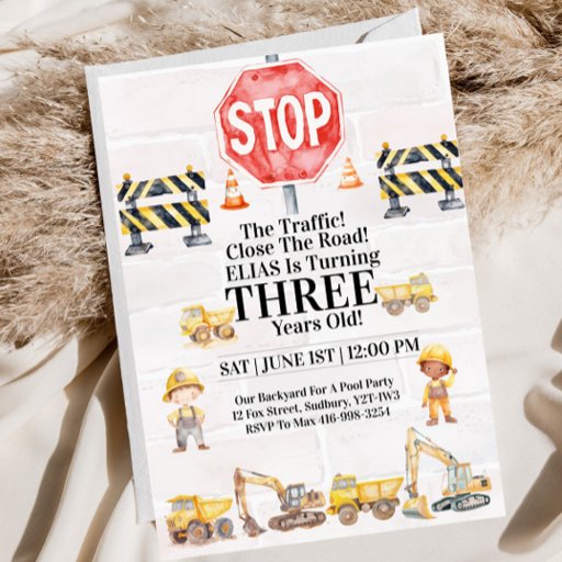 Construction Themed Children's Birthday Invitation