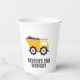 Construction Truck Birthday Party with dump truck, crane, caution signs and orange cones.